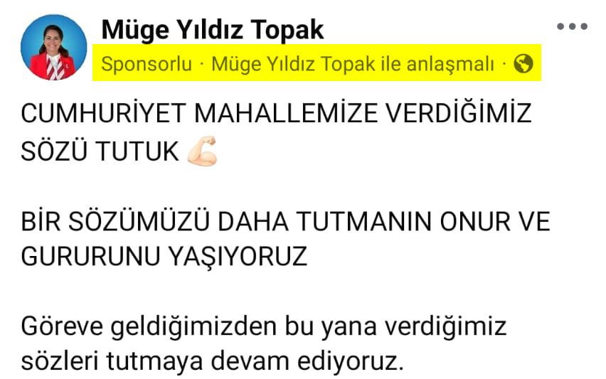 Tüm bu tartışmaların ortasında, Başkan Müge Yıldız Topak’ın son dönemde sosyal medyada yoğun biçimde yayımladığı sponsorlu gönderiler de dikkat çekiyor. Topak’ın kamuoyuna duyurduğu hemen her mesajın, Facebook ve Instagram gibi platformlarda yaygın şekilde ücretli reklam olarak öne çıkarılması, yeni bir tartışma başlattı.