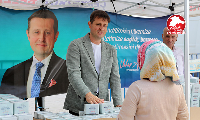 Mevlid Kandili dolayısı ile Çerkezköy Belediyesi tarafından Cumhuriyet Meydanı’ndaki kandil simidi dağıtımına Çerkezköy Belediye Başkanı Vahap Akay, Belediye Başkan Yardımcısı Nedim Yılancı, Belediye Meclis Üyeleri Erdal Zengin, Beytullah Coşkun, İbrahim Çekçi ve Mehmet Hanifi Karataş katılarak, halkın kandilini kutladılar.