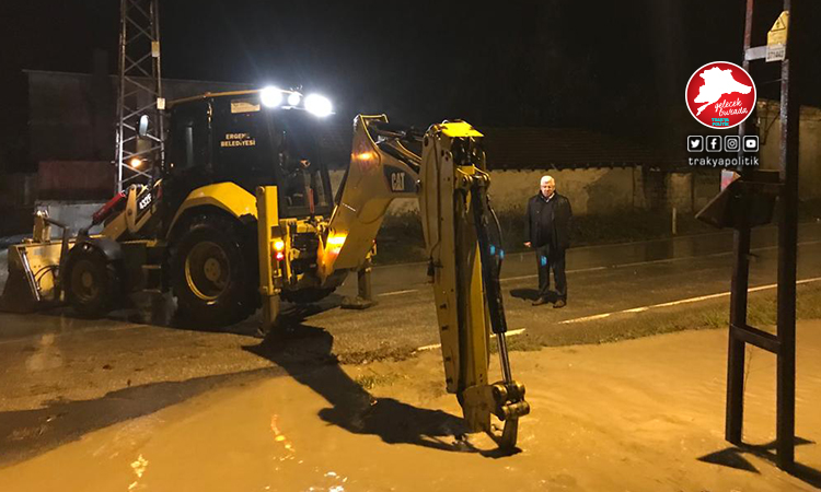 Ergene’de önceki akşam aniden bastıran yağmurun ardından Ergene Belediye Başkanı Rasim Yüksel Fen İşleri Müdürlüğü tarafından Bakırça ve Ahımehmet mahallelerinde yağmur sularının deşarjını sağlamak için çalışan ekiplerin başında yer aldı.