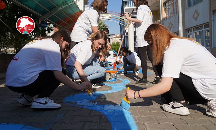 Çocuk Sokağı, yaklaşan etkinlikler öncesinde Belediye Başkan Vekili Deniz Balaban Şahin, Belediye Başkan Yardımcısı Kemal Pektaş ve Çocuk Hakları Birimi gönüllüsü çocuklarla baştan aşağı boyanarak güzelleştirildi.