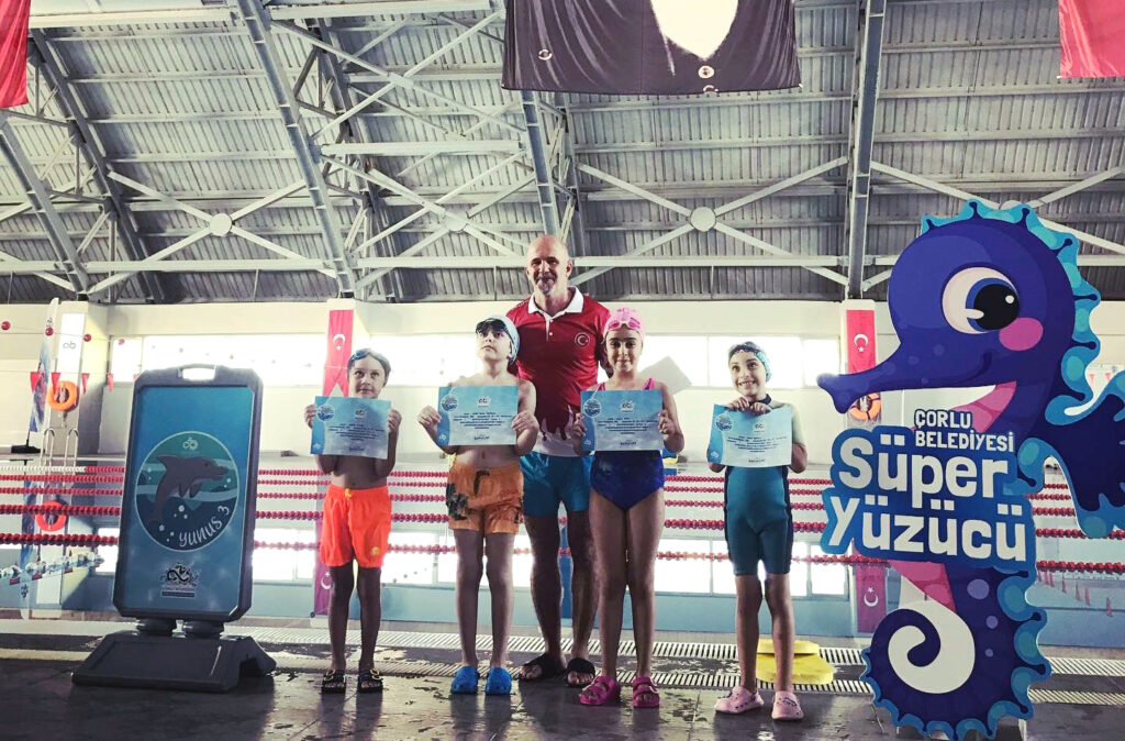 Çorlu Belediyesi İşletme ve İştirakler Müdürlüğü bünyesinde düzenlenen yaz dönemi yüzme kursları Mustafa Kemal Atatürk Yarı Olimpik Yüzme Havuzu’nda devam ediyor.