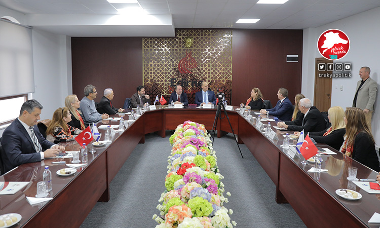 Edirne Belediye Başkanı Recep Gürkan, İsrailli Bat-Yam Belediye Başkanı Tzvika Brot ve beraberindeki heyetle Atatürk Kültür Merkezi’nde bir araya geldi. Gürkan, burada yaptığı konuşmada konuk heyeti Edirne’de ağırlamaktan memnuniyet duyduğunu ifade etti.