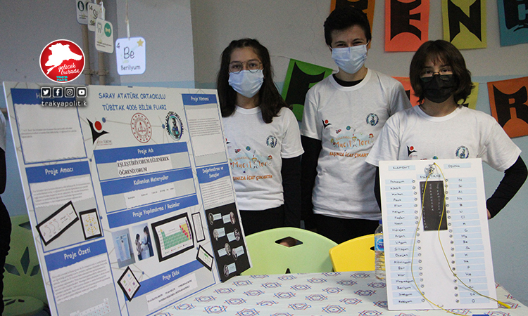 “TÜBİTAK yaklaşık 8-9 yıldır ‘4006 Bilim Fuarları’ adı altında okullarda öğrencilere kendilerini ifade etmeleri, yaparak yaşayarak öğrenmeleri adına bir ortam tasarlıyor. Bunun için öğrenciler projeler oluşturuyor. Bunlar araştırma, inceleme ve tasarım alanda olmak üzere 3 bölümde oluyor. Bunların da alt başlıkları var sağlık sitem gibi. Bunları sergiliyor öğrenciler. Burada önemli olan öğrencinin kendini ifade etmesi, projesini yaptığı ürünü anlatabilmesidir. Muhteşem, icat edilmemiş bir şey olması gerekmiyor. İcat edilmiş, araştırılmış bir şeyi tekrardan ele alıp inceleyebilir. Önemli olan burada arkadaşlarına, yaşıtlarına, büyüklerine kendini ifade etme becerisi kazandırabilmek ve bilimin farklı yönlerini gösterebilmek. TÜBİTAK bunu desteklemek için bunu yapıyor. Biz de daha önce Atatürk Ortaokulu olarak bunu sergiledik, yaptık. Bu proje 2019 müracaatımızdı, 2019’dan kalma projemizdi covid nedeniyle yapamadık. TÜBİTAK tarafından bu sene yapmamız uygun görüldü. Yaklaşık 2 yıllık bir çalışmanın ürünü ama daha kısa sürede yapılabilir.”