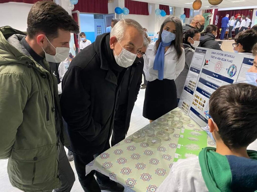 Atatürk Ortaokulu’nun TÜBİTAK’ın katkılarıyla düzenlediği 4006 Bilim Fuarı’nın açılışı Perşembe günü saat 14.00’da gerçekleştirildi. Pandemi kuralları çerçevesinde gerçekleştirilen bilim fuarı açılışına Saray İlçe Milli Eğitim Müdürü Reşat Uçak, Saray Belediyesi Kültür ve Sosyal İşler Müdürü Arif Naci Öngören, okul müdürleri, öğretmenler ve öğrenciler katıldı. Saray İlçe Milli Eğitim Müdürü Reşat Uçak ve protokol üyeleri stantları tek tek gezerek, öğrencilerden projeler hakkında bilgi aldı.