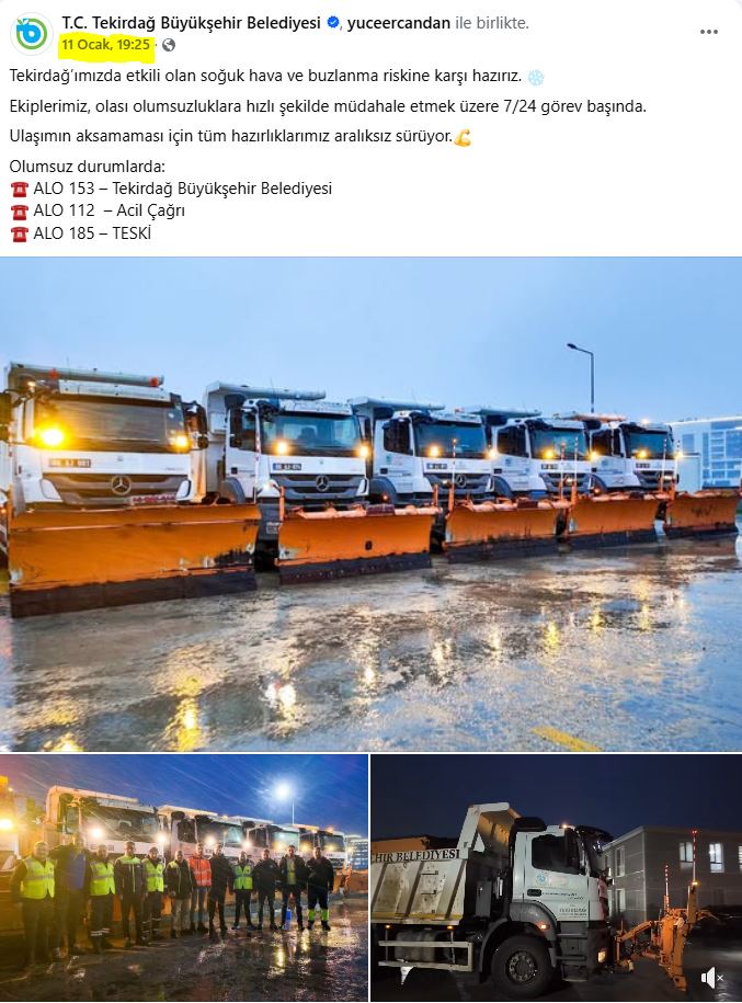 Tekirdağ’da kar yağışının ardından önce sosyal medyada dolaşıma sokulan, ardından Sabah’ta “Tekirdağ’da kar yağdı! Büyükşehir Belediyesi sınıfta kaldı” başlığıyla servis edilen içerik, şehirdeki durumu tek bir fotoğraf ve “isimsiz vatandaş” cümleleriyle genelleyerek “belediye yoktu” sonucuna bağladı. Oysa aynı saatlerde hem resmî makamların duyuruları hem de sahada yürütülen karla mücadele çalışmasına dair veriler, bu iddiayı doğrulamak bir yana tam tersine başka bir tabloya işaret ediyor.