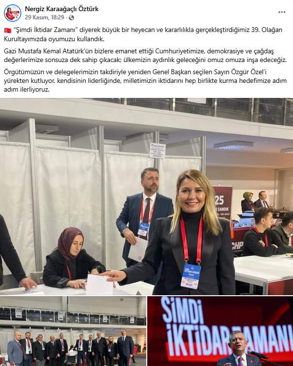 Malkara Belediye Başkanı Nergis Karaağaçlı Öztürk, kurultay temposunu dört paylaşımla sürdürdü. Mesajlarında “şimdi iktidar zamanı” hattını korurken, özellikle oy kullandığı anı öne çıkaran karelerle seçimin meşruiyet ve irade vurgusunu pekiştirdi. Trakya heyetiyle geniş kadrajlar ve Büyükşehir Belediye Başkanı Candan Yüceer’le verdiği ortak fotoğraflar, örgütle koordinasyon ve dayanışma görüntüsünü güçlendirdi. Öztürk’ün akışı; demokratik süreç, birlik ve kadın temsilinin görünürlüğünü aynı çerçevede buluşturan dengeli bir iletişim çizgisi sundu.