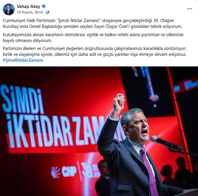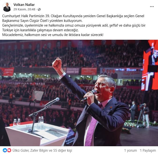 Kurultay boyunca Süleymanpaşa Belediye Başkanı Volkan Nallar ile Çerkezköy Belediye Başkanı Vahap Akay’ın, salonda bizzat varlıklarını gösteren bir kareyi kendi hesaplarından paylaşmamaları dikkat çekti. İki isim de süreci, kurultay bittikten sonra Özgür Özel’in yeniden genel başkan seçilmesini kutlayan, içerik ve ton bakımından birbirine oldukça benzer iki metinle kapattı. Bu tercih, ikiliyi görünürlük sıralamasında son basamakta konumlandırdı.