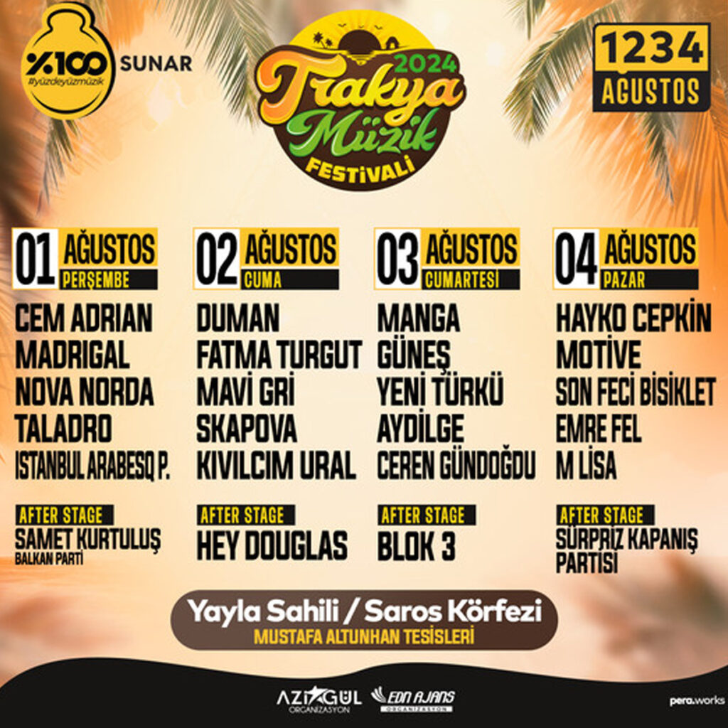 Trakya Müzik Festivali 2024, müziğin ve eğlencenin yanı sıra, Trakya’nın kültürel zenginliklerini tanıtmayı hedefliyor. Festival biletleri satışa çıktı ve yoğun ilgi görüyor. Bu yıl da unutulmaz anılara ev sahipliği yapacak olan festival, müzik tutkunlarını bekliyor.